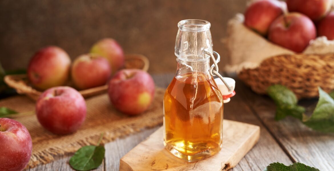 Apple cider vinegar (ACV) is a type of vinegar made with crushed fermented apples, yeast, and sugar. It’s used as an ingredient in foods such as salad dressings, pickles, and marinades.
